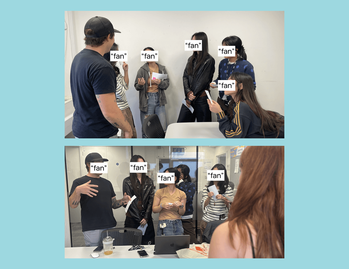 I created 6 fan characters and allocated live show tickets arbitrarily to see how they react. Chaos ensued, and the group ended up collaborating together to storm the gates.