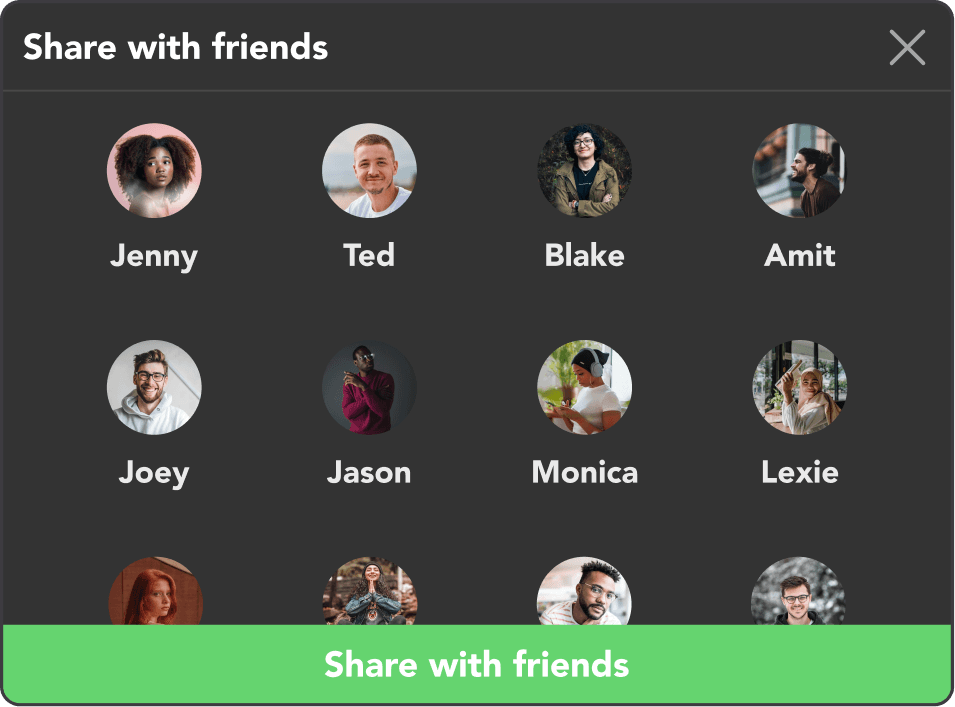 In-app song sharing option to send songs to friends. Additionally, an automatically aggregated playlist to serve as a designated place for you to find all suggested songs for easier listening and discovery management.