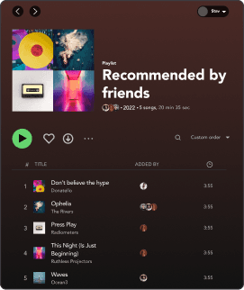 Inspired by the habit of creating mixtapes and the data showing user generated playlists dominate Spotify, I ideated that all songs sent to users would be automatically aggregated into a playlist, making it easier for users to manage song suggestions and find them at a later date.